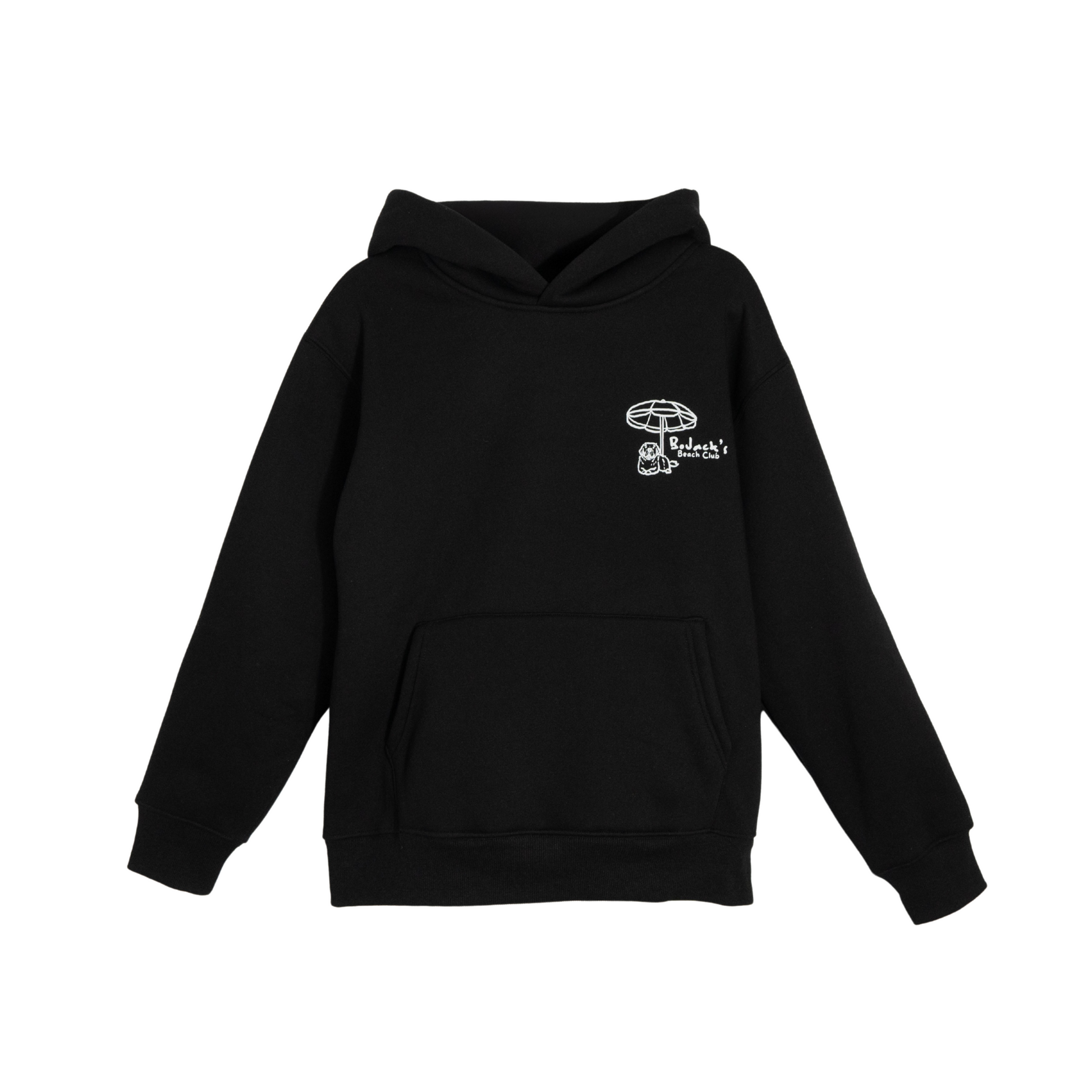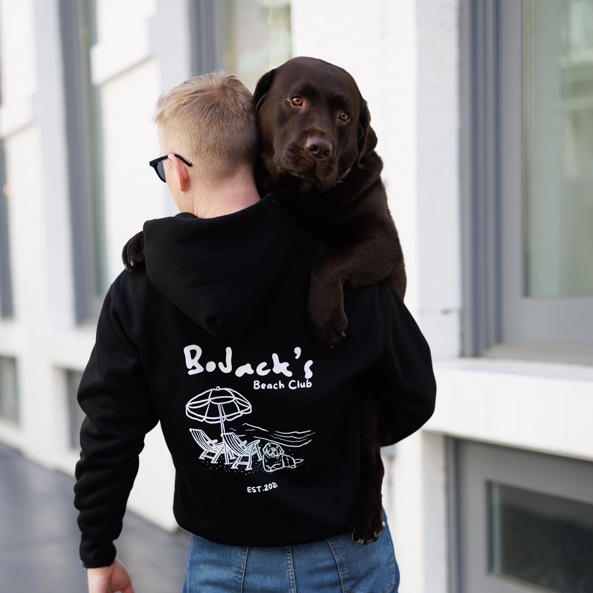 This black BoJack's Beach Club Hoodie is the perfect addition to your casual wardrobe. With a relaxed unisex fit, it offers both comfort and style for any beach outing. Stay warm while looking effortlessly cool in this must-have hoodie.